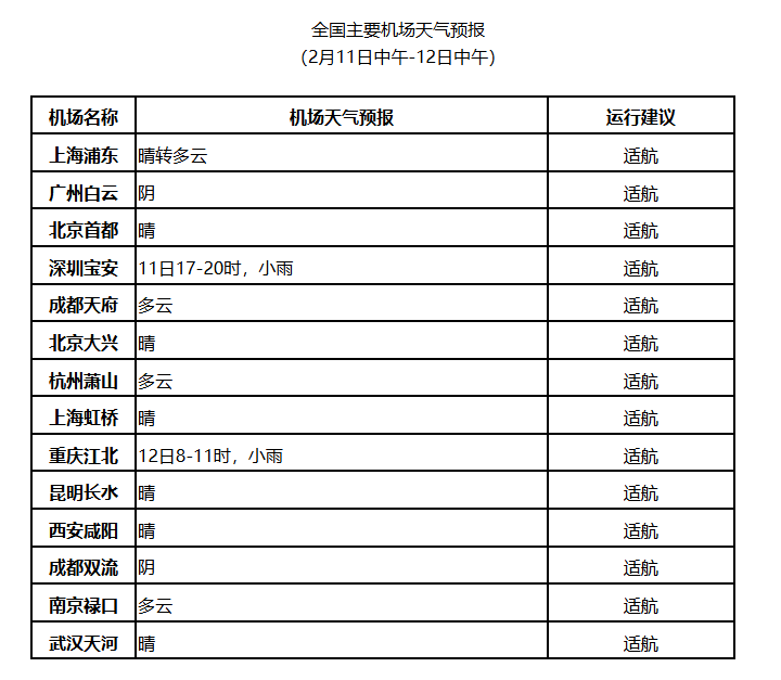 11日中午至12日中午,南宁、长沙等机场有小雨;12日凌晨至黎明,长沙机场有800米阁下的雾。