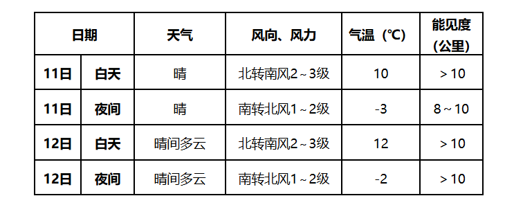 瞻望11日天气晴,白昼风力2~3级,最高气温10℃;夜间风力1~2级,开云sports最低气温-3℃。12日天气为晴间多云,风力不大,白昼最高气温12℃,夜间最低气温-2℃。