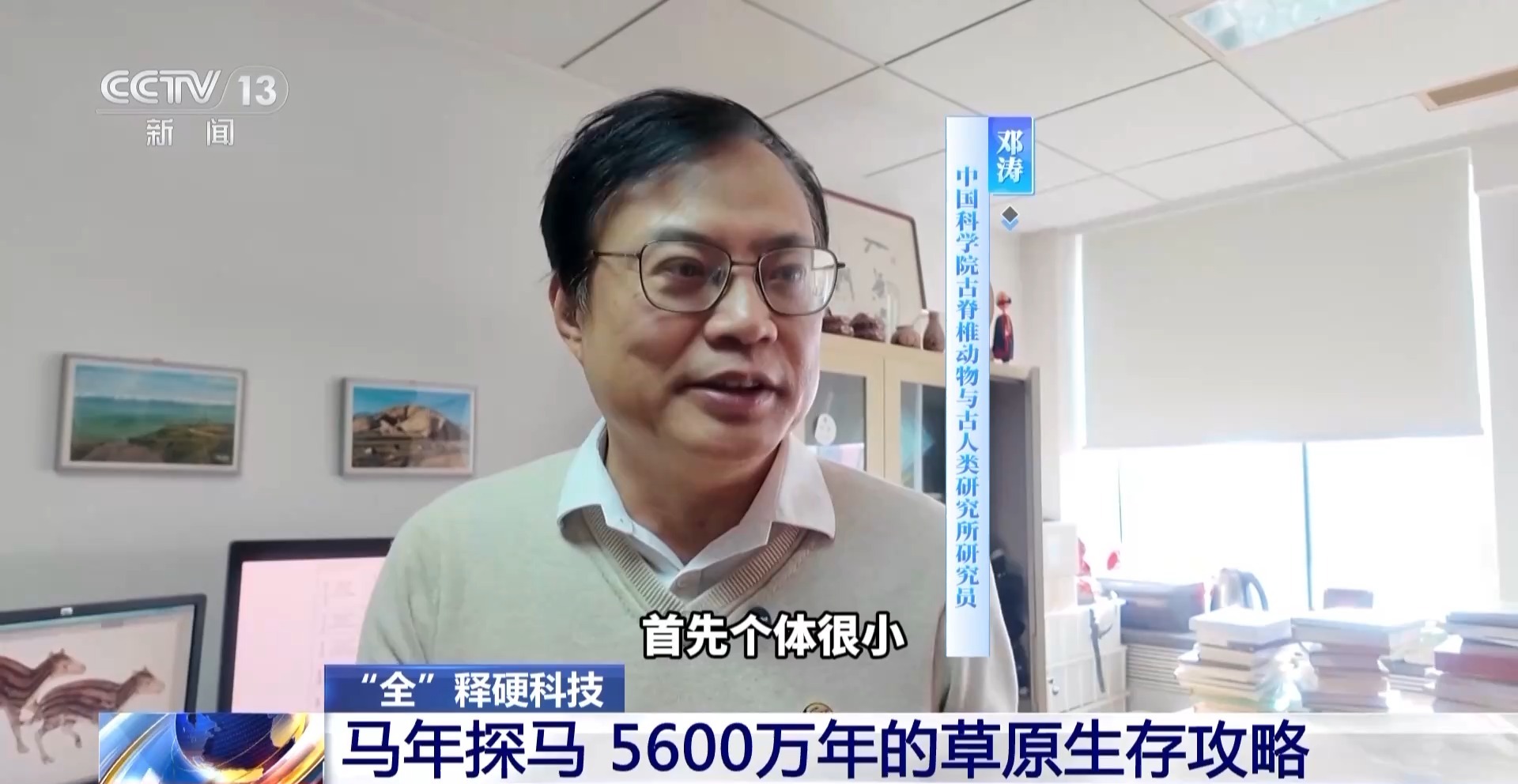 中国科学院古脊椎动物与古东谈主类扣问所扣问员 邓涛:草原相配开朗,马这样的食草的动物,它们在草原上莫得不错荫藏的场所,它们要隐痛敌害的跟踪,那就必须有很快的奔走速率,这样就酿成了马的另外一个演化,它的脚从前脚4个脚趾、后脚3个脚趾,冉冉地退化。