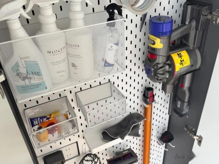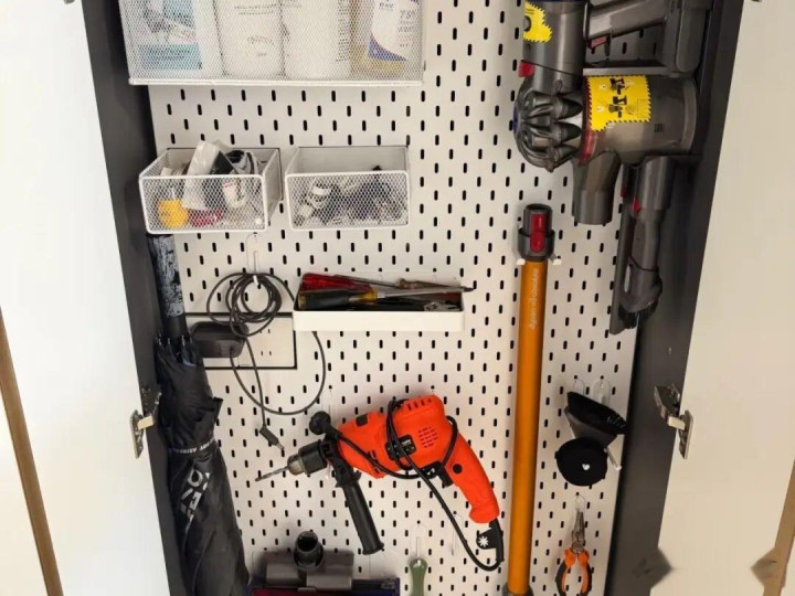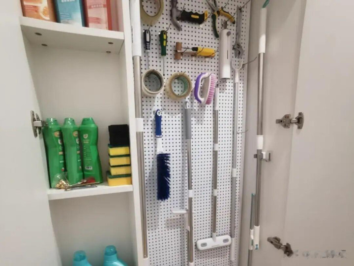 家政柜里面,尽量设立洞洞板或者是挂钩,不错最大化的期骗里面的空间。