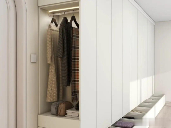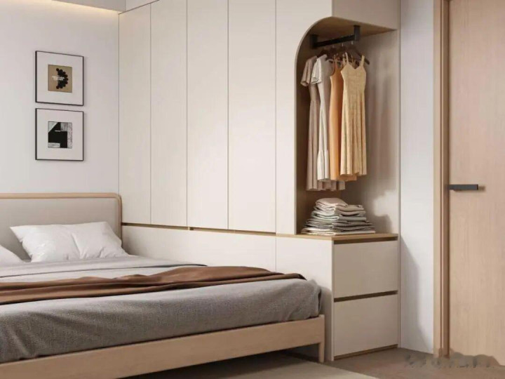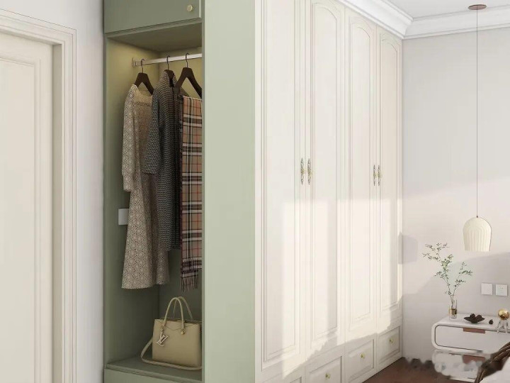 谋划的技艺,尽量聘用与衣柜同色的门板,保握外不雅长入。