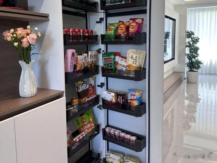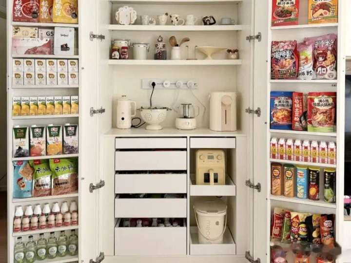 像许多柜子用好了,收纳清洁用品,保鲜膜,垃圾袋等小物品口角常通俗的。况兼是开门就可见,取用也口角常通俗,用起来很顺遂。