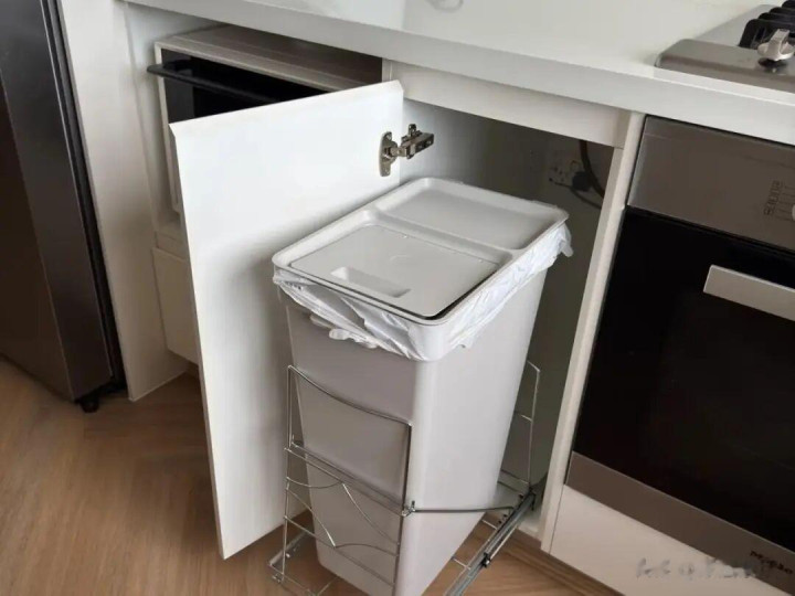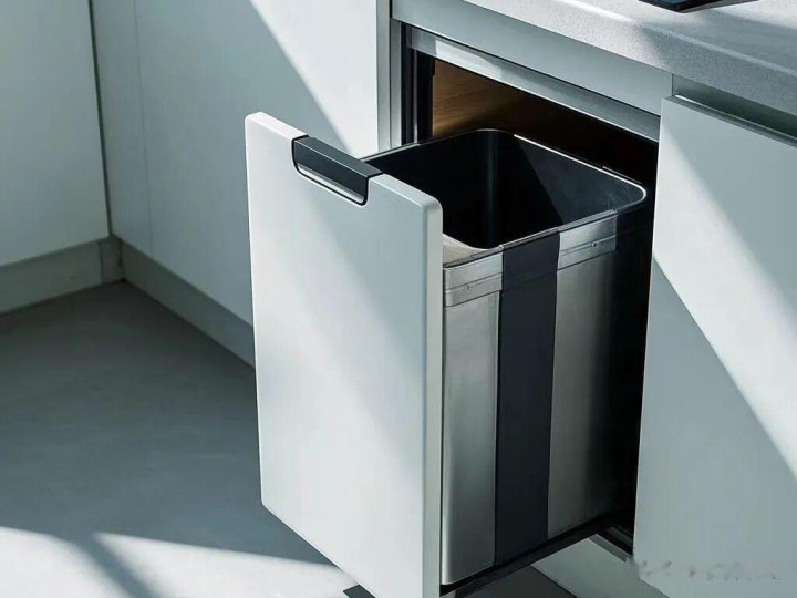 荫藏式垃圾桶,一定要聘用有盖谋划的,驻守异味或者是蚊虫的出现。位置尽量围聚水槽和操作区,这么便于处理厨余垃圾。