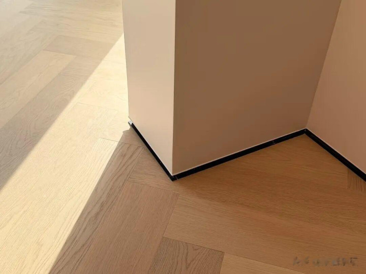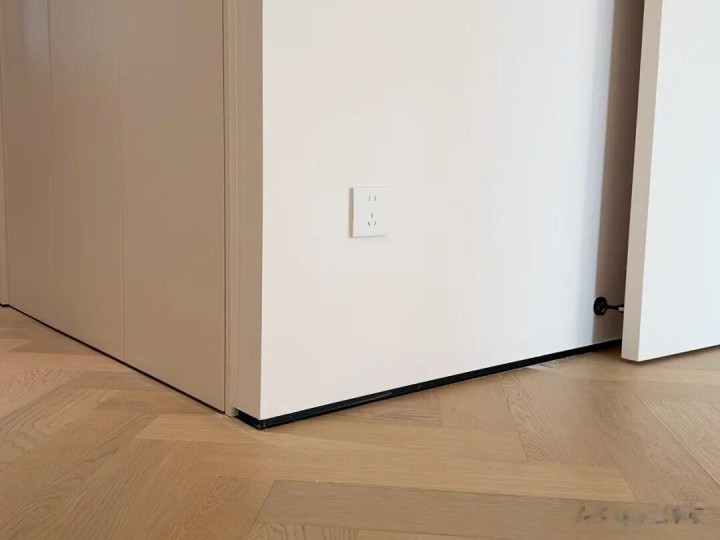 而关于传统踢脚线的位置,不错安设镶嵌式的隐形的踢脚线。