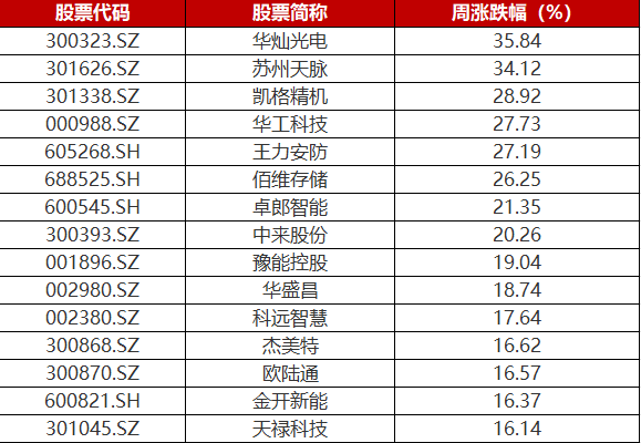 本周鸿蒙板块个股涨幅一览