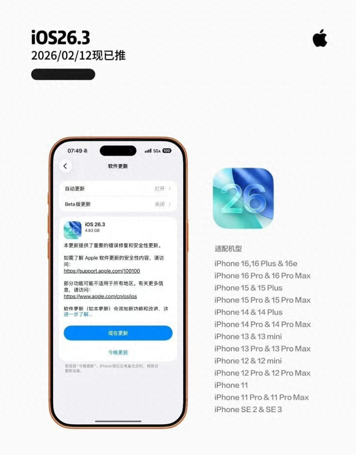 2026年2月12日,苹果公司对外发布进展安全公告,同步推送iOS26.3与iPadOS26.3两款系统版块。本次系统推送莫得带来全新的功能体验,也未对界面与操作逻辑作念出调度,一起更新本体围绕开发安全顾惜伸开。苹果官方在公告中明确标注,本次更新一次性不停系统内存在的37个安全间隙。时间监测信息走漏,这批间隙中至少有一个照旧被蚁集黑客掌持并主动哄骗,平日用户的开发隐讳与数据安全面对委果存在的挟制。