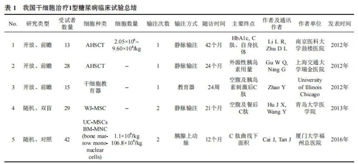 2016年,厦门大学福州总病院开展了脐带间充质干细胞鸠合自体骨髓细胞经胰上动脉移植治疗1型糖尿病患者的赶紧、对照灵通性临床接头。