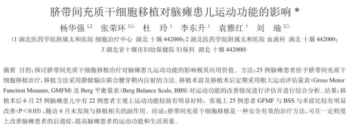 脐带间充质干细胞改善脑瘫患者的畅通功能