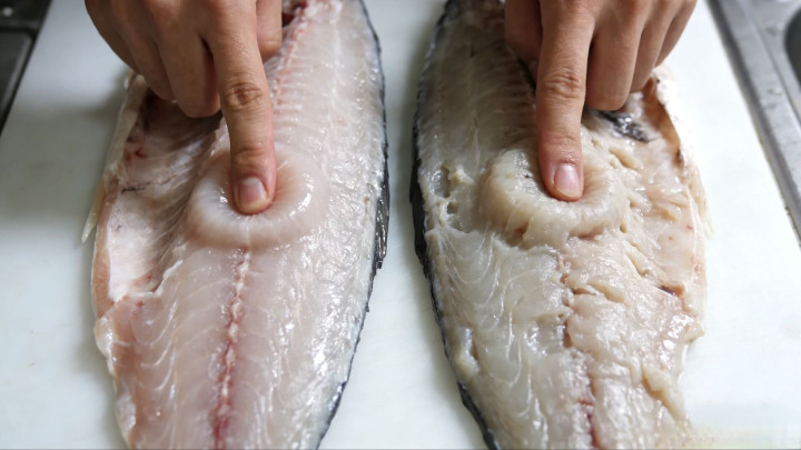 别离款式相当直不雅:用手指用劲按压鱼身肉最厚的位置,要是鱼肉发软、凹下后不回弹,致使一按一个坑,评释这条鱼仍是不极新,存放时刻过久;要是按压后鱼肉快速回弹,手感紧实有弹性,才是极新好鱼。过年买鱼,宁可多花几块钱,也别买这种发软变质的死鱼。