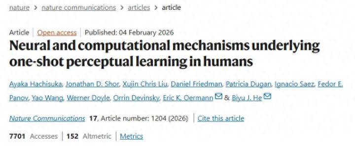 Hachisuka, A., Shor, J.D., Liu, X.C. et al. Neural and computational mechanisms underlying one-shot perceptual learning in humans. Nat Commun17, 1204 (2026).