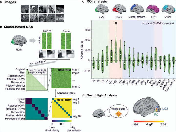 为了平直考据,扣问团队进行了7T超高场功能磁共振成像。他们让受试者被迫不雅看经过上述各式驾御的明晰图片,并分析不同脑区对这些图片的神经表征。
