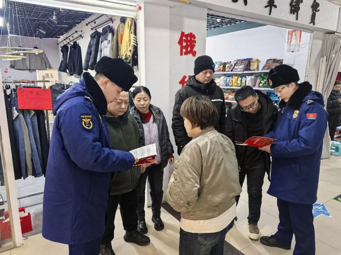 在抚远港口,消防员的使命和新春的氛围水乳交融:商铺播放着中俄双语新年歌曲,旅客、住户相通驻足选购年货,该大队防火监督员郑家瑜带着新队员来到这里,开云体育用中俄双语开展消防安全宣传。