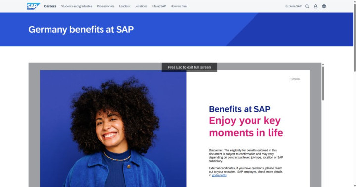 而从 SAP 官方业绩页面来看,它永远强调的职工福利标的包括 flexible work schedules、generous vacation days、healthcare、family support、work-life balance 等内容。这阐述这类岗亭的诱惑力,不仅仅税前工资高,而是时时诞生在一个更老到的雇佣体系上。