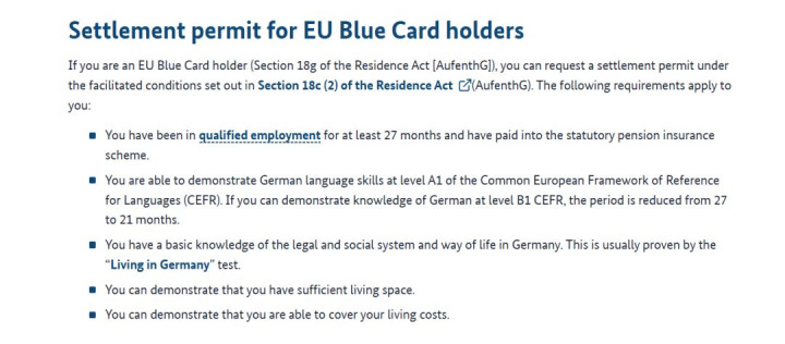 德国官方刻下国法下,蓝卡执有东谈主淌若执续从事及格业绩并按章程交纳法定待业金保障,在德语达到 A1 的情况下,时时 27 个月 可以肯求德国长久居留;淌若德语达到 B1,则可裁汰到 21 个月。是以我们一直不冷落把“德语不是硬门槛”融合成“德语不进攻”。